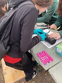 Mit großer Neugier tauchten die Schüler:innen in die interaktive Welt des Papiers ein: Angefangen bei den Ursprüngen des Schreibens auf Stein, Papyrus oder Bienenwachstafeln ging es weiter an Stationen, an denen eigenes Papier geschöpft werden.
